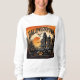 Spooky assombrou a mansão de Halloween com Jack o'lantern na frente e morcegos no céu. Esta camisola estranha é perfeita para as caras ou garotas deste Halloween. Feito de algodão pré-encolhido a 100%.