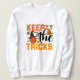 Mantenha a camisola do Dia das Bruxas A família moderna que combina com a camisa do Dia das Bruxas design apresenta o texto "Witch Be Crazy Halloween" em letras laranja e brancas com um pequeno sotaque fantasma. Encomenda cada membro da sua tripulação.