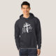 Este moletom masculino é mostrado em cinza escuro com texto branco: Ele Ressuscitou