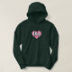 Esta camisola de capuz tem um coração rosa vibrante contendo as MÃES em letras maiúsculas, brancas e em negrito, a abreviação oficial de Massachusetts, o estado da baía.