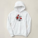 Contour, mechanical crescent moon with gears, decorated with red roses with black spiked stems and leaves on white background. Steampunk
