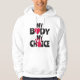 Design de texto com a citação "Meu corpo, minha escolha". Defenda a dignidade humana, a igualdade de gênero, os direitos das mulheres e a autodeterminação.