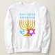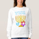 A camiseta moderna HANUKKAH Menorah Dreidel unisex, com TEXTO PERSONALIZÁVEL e desenhada com a falsa menorah dourada, estrela colorida de David e sonho ciano azul mais GREETING PERSONALIZÁVEL, para que você possa criar sua própria saudação. Ideal para a estação de Hanukkah. Escolha entre uma ampla seção de roupas e presentes de Chanucá, desenhados por Designs Bereanos. Também vem em preto.