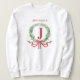 Esta camisola de Natal tem uma design pré-disquete do milênio apresentando uma coroa de Natal com uma letra de monograma no centro. Você pode personalizar com seu nome e nome iniciais.
