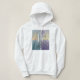 Mulheres de Força têm Padrões e Vestem-nos Graciosamente. A mulher está sangrando com um quadro de água na frente e cite atrás. As cores são blues e roxas suaves no estilo ombre.