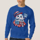 Compartilhe o espírito da estação assustadora com esta design de mashup divertida que reúne Halloween e suas visões políticas. Um fantasma patriótico segura uma placa de Harris Walz '24 junto com o popular slogan de Obama: Don't Boo, Vote!