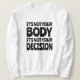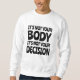 Design de texto com a citação "Não é o seu corpo Não é a sua decisão". Defenda a dignidade humana, a igualdade de gênero, os direitos das mulheres e a autodeterminação.