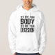 Design de texto com a citação "Não é o seu corpo Não é a sua decisão". Defenda a dignidade humana, a igualdade de gênero, os direitos das mulheres e a autodeterminação.