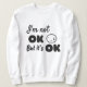 Engraçado e significativo design com um triste emoticon e a citação "Não estou bem, mas está tudo bem".