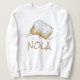 O Sweatshirt apresenta uma ilustração original de uma deliciosa rede bege, tocada com açúcar em pó, e a NOLA numa fonte divertida.