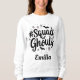 Camiseta personalizada de nome do Halloween moderno para amigos. O design apresenta o texto "#Squad Ghouls" em tipografia negra com elementos de morcego e fantasma. Faz o melhor presente personalizado para seus melhores amigos/esquadrão. Perfeito para fazê-los sentir-se especiais, aumentar a sua confiança e obter um dom único e infeliz! Até temos camisetas, chaveiros e camisas com o mesmo design na nossa coleção juntamente com mais de 25 designs únicos para amigos. Por favor, dê uma olhada. Camisas de vamos com o nosso esquadrão, Feliz Halloween!