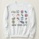 A camisola apresenta um marcador original ilustrativo de uma variedade de comidas clássicas de Nova Iorque, incluindo bagels, cheesecake, loucos, bife de tira, pretzels macio, pizza e muito mais.