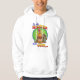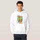Trabalhos de arte coloridos em um hoodie que descreve uma inclinação cómica na resistência masculino