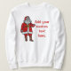 O Natal Papai Noel dos desenhos animados nesta camisola está esperando-o para adicionar seu próprio texto. Pode dizer que qualquer coisa que você gosta - apenas encha dentro "personalizam-no" campo, ou personalizam-no mais para ajustar a pia batismal/tamanho/cor. O santo idoso alegre Nick está vestindo um terno vermelho com guarnição branca da pele e as botas marrons. Sua boca é aberta e está gesticulando com uma mão gloved. Excelente se você quer fazer sua própria camisola feia do Natal para o xmas.