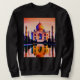 Sweatshirt em uma ilustração do Taj Mahal, refletida na água, e apoiada por um céu ensolarado cor de laranja profundo