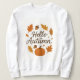 Fique confortável e na moda neste outono com nossa camiseta "Olá outono"! Apresentando uma abóbora quente e design de folhas de outono, esta camisola macia e confortável é perfeita para dias frios, momentos de café e noites confortáveis. Um imperativo para todos os amantes do outono!