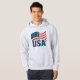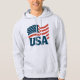 Um design tipográfico ousado, onde as letras "EUA" se misturam perfeitamente a um elemento gráfico abrangente — sugerindo movimento, conexão e orgulho. A design simboliza a fusão da identidade nacional com um espírito virado para o futuro, capturando a energia e a diversidade da América através da harmonia visual.