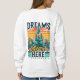 A design da camiseta "Dreams Grow Here" apresenta uma ilustração vibrante de uma árvore florescente, simbolizando o crescimento e o potencial. Cada ramo está cheio de flores e folhas coloridas, representando sonhos, aspirações e realizações pessoais. As raízes da árvore são intricadamente detalhadas, embasando a design e evocando a ideia de que fundações fortes levam ao crescimento do excelente. As palavras "Sonhos Crescem Aqui" estão tecidas nos ramos, dando a impressão de que fazem parte do crescimento natural da árvore. O sentimento geral é esperançoso e inspirador, fazer perfeito para quem acredita em alimentar seus sonhos.