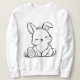 Zierliches Häschen-Design im feinen Linienstil mit Osterei, perfekte Frühlingsnote für Kinderkleidung und Accessoires, sanfte Pastellakzente.