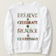 Espalhe o espírito natalino com este design fofo e estampado que apresenta "Acredite, Celebre, Alegre-se, Natal" em tipografia festiva repleta de motivos natalinos vermelhos e verdes. Cada letra exibe enfeites, árvores de Natal, poinsettias e padrões sazonais clássicos que trazem alegria e calor às suas celebrações.