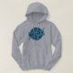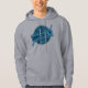 Design de círculo retrô em tons azuis escuros e claros, com dois bastões de hóquei, e uma legal incisão de raio, e o texto 'Não. 1 Pai de hóquei. Obtenha um monte de ideias de dia de os pais, aniversário e presente de natal para o seu pai de Natal!