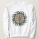 Uma pintura digital de mandala em blues, vermelhos e cremes
