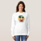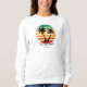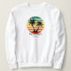 Sol retrô vibrante com uma silhueta preta de palmeira.
