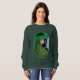 Um belo papagaio de arara verde contra um fundo de fantasia fecha-se. Fotografia animal por Susan.