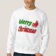 Docinho com Feliz Natal em texto verde e vermelho 3D e trenó de Papai noel. Sweatshirt disponível em várias cores.