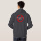 Hoodie cinzento escuro com um vermelho, sinal da PARADA na parte traseira que diz: Monsanto GMOs.