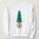 Paz em cumprimentos da terra com árvore de Natal e símbolo de paz.