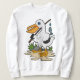 Moletom Pelicano como pescador com cana de pesca e peixe