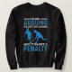 A camiseta da Penalty do jogador de hóquei com texto branco e azul em fundo preto diz que eu não estou discutindo só porque não foi uma penalidade! Tempos de humor de hóquei que certamente serão um sucesso com qualquer jogador de hóquei também mostra jogadores de hóquei da silhueta azul.