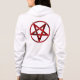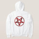 Pentagrama vermelho, invertido, texturizado em círculo, sobre fundo branco. Símbolo oculto. 666