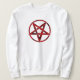 Pentagrama vermelho, invertido, texturizado em círculo, sobre fundo branco. Símbolo oculto. 666
