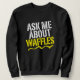 Divertido, ousado e irresistível doce — Pergunte-me sobre Waffles é uma engraçada design gráfica com tema de waffle para alimentos que vestem sua obsessão pelo café da manhã com orgulho. Quer você ame waffles ouros, crocantes, empinados com xarope, fruta ou chantilly, este design giro e brincalhão provoca conversas e desejos onde quer que você vá. Ideal para amantes de café, fãs de café da manhã, e qualquer um que acredita em waffles merece o holofote. Um presente de excelente para amantes de waffle ou uma saborosa adição ao seu guarda-roupa de foodie!
