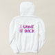Frente: PERI ROUBOU MINHA SANIDADE: EU QUERO DE VOLTA Este capuz não só fala, como espirala. Com texto ousado e gradiente em roxo e rosa, ele captura o caos hormonal da meia-vida com humor, honestidade e um pouco de asas cósmicas. Suave, superdimensionado e emocionalmente preciso, é perfeito para sessões de terapia, tarefas de fusão, ou apenas sobreviver ao dia com estilo e sarcasmo.