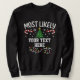 This design is made for them. Imagine a stack of shirts at a family gathering, all with the same festive “MOST LIKELY” banner, each one customized with a different line.