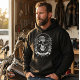 Stay warm in this personalized 2-sided biker hoodie! Front features a grunge skull helmet; back displays a vintage motorcycle chopper. Essential winter outfit for cold rides. Customize with a name. Perfect gift for dads, riders & motorcycle enthusiasts. Cool retro moto pullover.