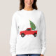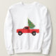 Tire o Natal... design de arte de Natal. Ilustração adorável de um caminhão vermelho pegando uma árvore de Natal. Ideal para decorações de Natal, roupa e presentes.