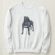 Um cachorro-preto-do-pit-bull olhando para a distância para cães e amantes de os animais.