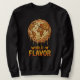 Cartoon Earth as a giant dripping pizza, with distressed text: “World of Flavor.”