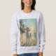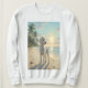 Capture the essence of coastal tranquility with this beautiful digital painting of a white Poodle on a tropical beach. The artwork depicts an elegant poodle posing in the warm light of a sunset, surrounded by palm trees, fine sand, and seashells.