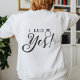Camiseta "Future Mrs. Bride, Noivo Presente de Noivado" com nome personalizado. Esta camiseta é um presente agradável para a noiva radiante! Esta camiseta confortável e elegante apresenta as palavras "Future Mrs." na frente, permitindo que ela exiba orgulhosamente seu novo sobrenome futuro. O que torna esta camiseta verdadeiramente especial é a opção de personalização para que ela adicione seu novo sobrenome, tornando-a um item único e pessoal para sua jornada ao altar. Mas as surpresas não param por aí. Na parte de trás da camiseta, você encontrará as palavras doces e sentimentais "Eu disse Sim!" acompanhadas por uma imagem de um anel de noivado lindamente desenhada. É um lembrete emocionante daquele momento especial em que ela disse "sim" para uma vida de amor e compromisso.