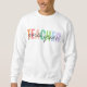 Esta camisola unisexa apresenta um arco-íris pastel de cores dizendo TEACHER. Pode ser personalizado com qualquer nota. O design funciona melhor em opções de impressão branco ou vívido.