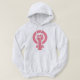 O símbolo feminino com um punho do poder no centro nas máscaras do rosa, em t-shirt, sua, botões, etiquetas, artigos do presente.