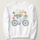 A design "Fall Vibes" é uma ilustração encantadora e caprichosa que captura perfeitamente a essência do outono. O elemento central do design é uma bicicleta ao estilo vintage, reproduzida numa cor azul macia e pastel. A bicicleta tem um olhar clássico e retrô com guiões curvos e uma cesta conectada à frente.