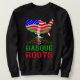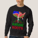Mapa dos EUA com bandeiras do País Basco e norte-americanos se misturaram com o texto Basco Roots em vermelho e verde.
