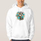 Relógio antigo e patenteado, adornado com joias, mãos de ouro e algarismos latinos com rosa de turquesa sobre fundo castanho e listrado. Estilo Steampunk.