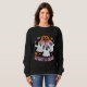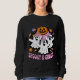 Três fantasmas felizes entortam em volta de uma bola de disco rosa enquanto um sorridente jack o’ lantern assiste de cima tão "Spooky & Groovy"! As letras retrorreflectoras dos anos 70, pinks pastel, romas e laranjas, mais doces e sotaques de flores dão a esta camisola uma divertida fusão de Dia das Bruxas na discoteca. Perfeito para festas opcionais, noites de outono confortáveis, ou qualquer um que ama fantasmas bonitos com vibrações.
